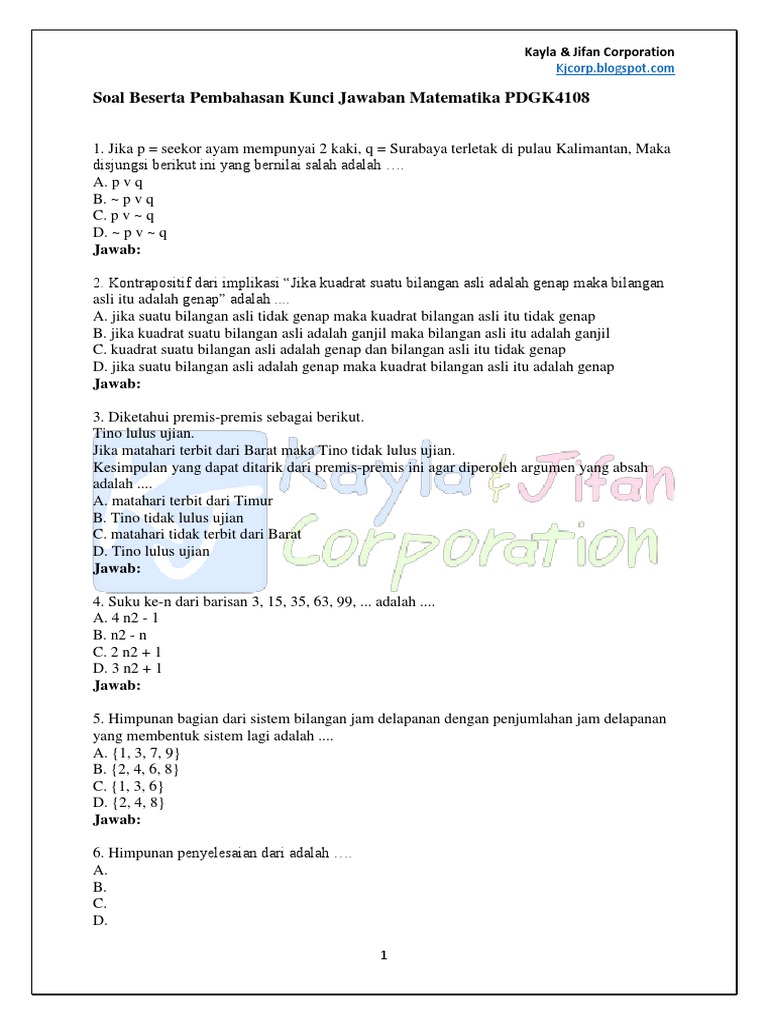 Soal Ujian Ut Pgsd Pdgk4108 Matematika Disertai Kunci Jawaban from 2.bp.blogspot.com Maybe you would like to learn more about one of these? We did not find results for: Check spelling or type a new query. Soal uas ut matematika pdgk4108.